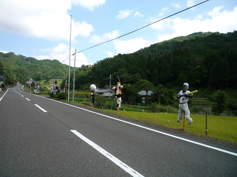 まずは今日一番の登り、小坂峠へと登っていきます。途中、案山子のお出迎えを受けて良い感じで高度を稼いでいきます。